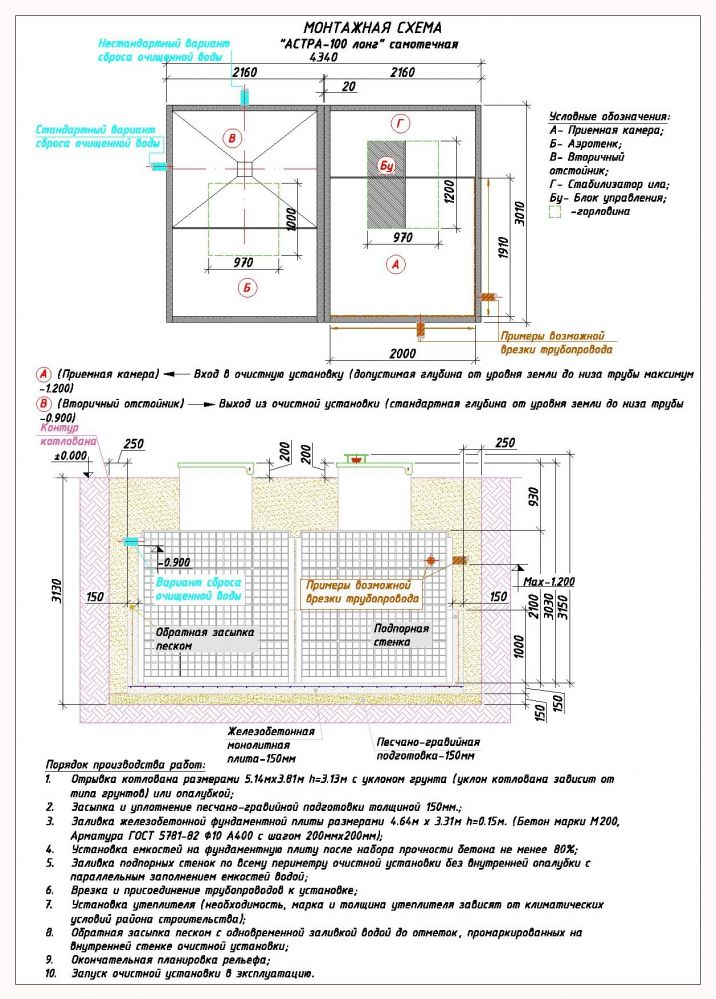 Насос для откачки: нет (самотечный сброс)